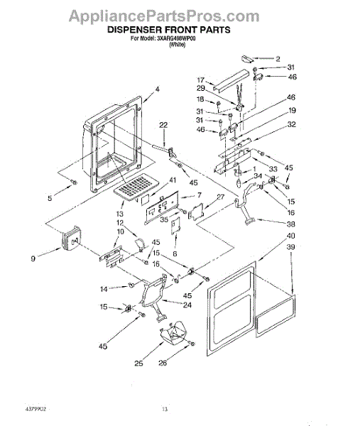 Parts for Whirlpool 3XARG498WP00: 08 - Dispenser Front Parts