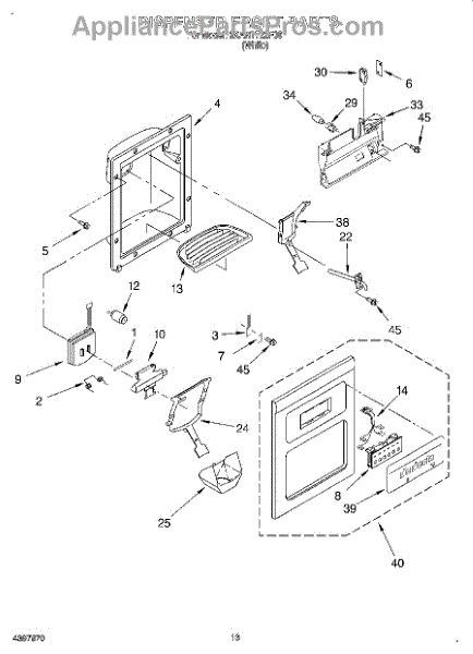 Parts for Whirlpool 3XART722F00: 09 - Dispenser Front Parts
