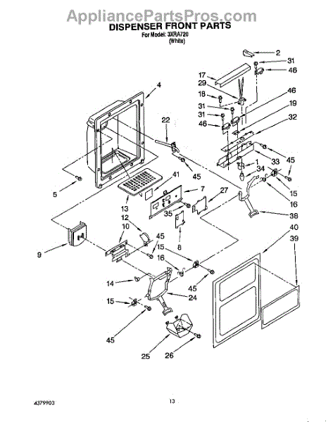 Parts for Whirlpool 3XRA720: 08 - Dispenser Front Parts