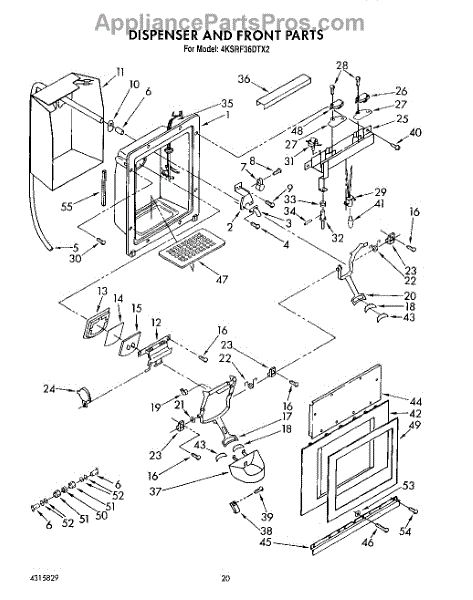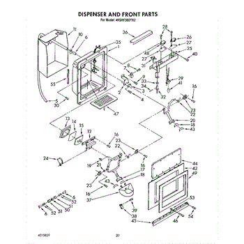 Parts for Whirlpool 4KSRF36DTX2: 12 - Dispenser And Front Parts