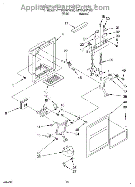 Parts for Whirlpool 4YED25PWDW01: 08 - Dispenser Front Parts