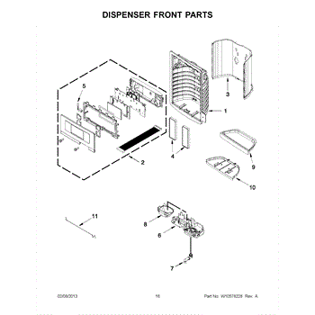 This dispenser separator assembly forms the interior of the refrigerator's ice/water dispensing area. It guides ice and water into your glass and helps seal the chute to limit warm air intrusion, drips, and frost at the opening.