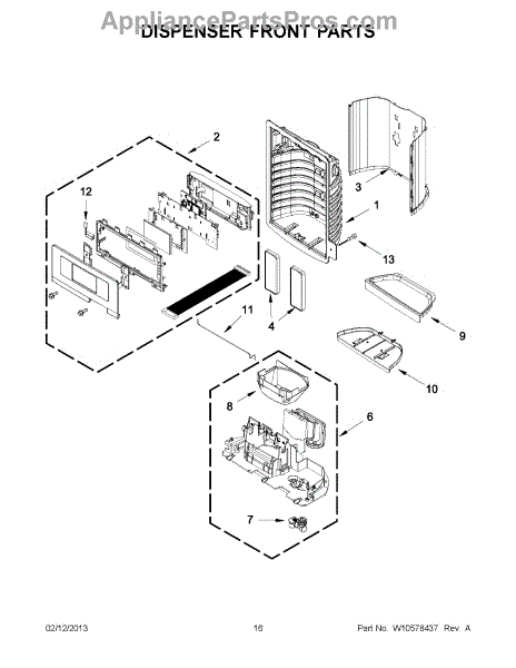 This dispenser separator assembly forms the interior of the refrigerator's ice/water dispensing area. It guides ice and water into your glass and helps seal the chute to limit warm air intrusion, drips, and frost at the opening.