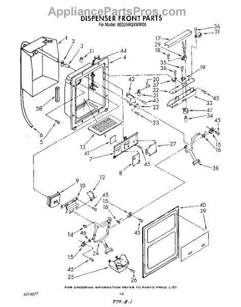 Parts for Whirlpool 6ED25RQXWW00: 09 - Dispenser Front Parts