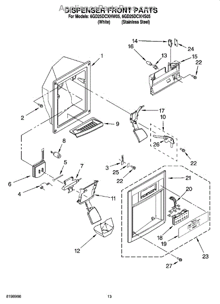 This ice dispenser lever is the white paddle your glass presses to activate the refrigerator's ice dispenser. Replace a cracked or worn lever to restore smooth dispensing and keep the dispenser area looking clean and finished.