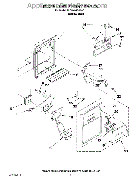 Parts for Whirlpool 6GD5SHGXSS07: 07 - Dispenser Front Parts