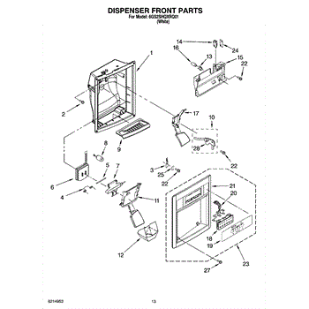 This ice dispenser lever is the white paddle your glass presses to activate the refrigerator's ice dispenser. Replace a cracked or worn lever to restore smooth dispensing and keep the dispenser area looking clean and finished.