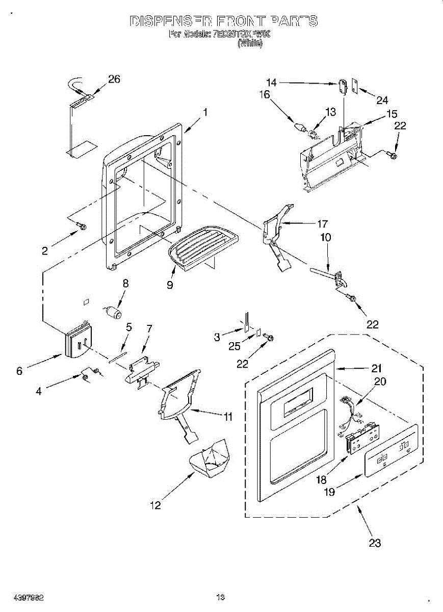 The Ice Dispenser Guide is an OEM replacement part for Whirlpool brand refrigerators. These brands also include Maytag, KitchenAid, Norge, Roper, Estate, and Kenmore models. It directs ice from the ice bucket to the dispenser chute. It helps to prevent jams by guiding the ice through the dispenser system smoothly and evenly.