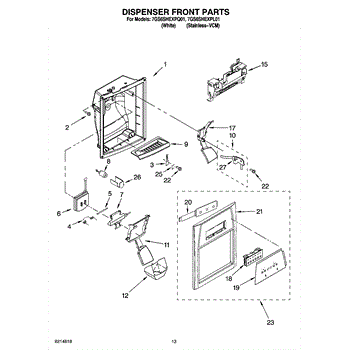 The Ice Dispenser Chute Door is an OEM part for Whirlpool refrigerators. This component is located in the ice dispenser mechanism on the freezer door and is responsible for opening and closing the ice chute. The chute door helps to dispense ice properly and prevents warm air from entering the freezer compartment, which can lead to frost buildup and inefficient cooling.