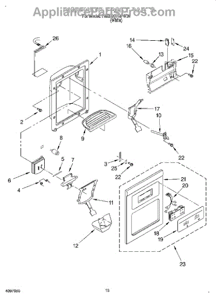 Parts for Whirlpool 7MED20TQFW00: 08 - Dispenser Front Parts