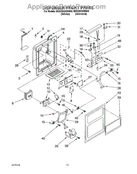 Parts for Whirlpool 8ED22DQXBN00: 09 - Dispenser Front Parts