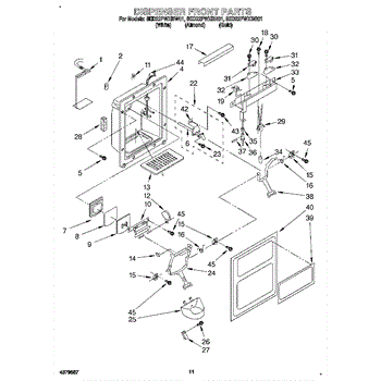 Parts for Whirlpool 8ED22PWXBN01: 08 - Dispenser Front Parts