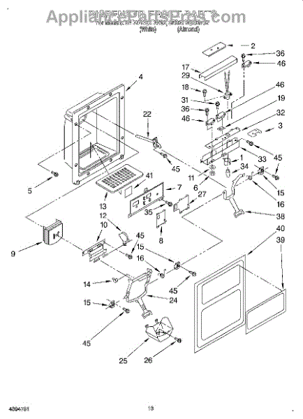 Parts for Whirlpool 8ED27DQXDW02: 08 - Dispenser Front Parts