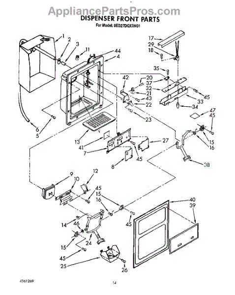 Parts for Whirlpool 8ED27DQXXN01: 09 - Dispenser Front Parts