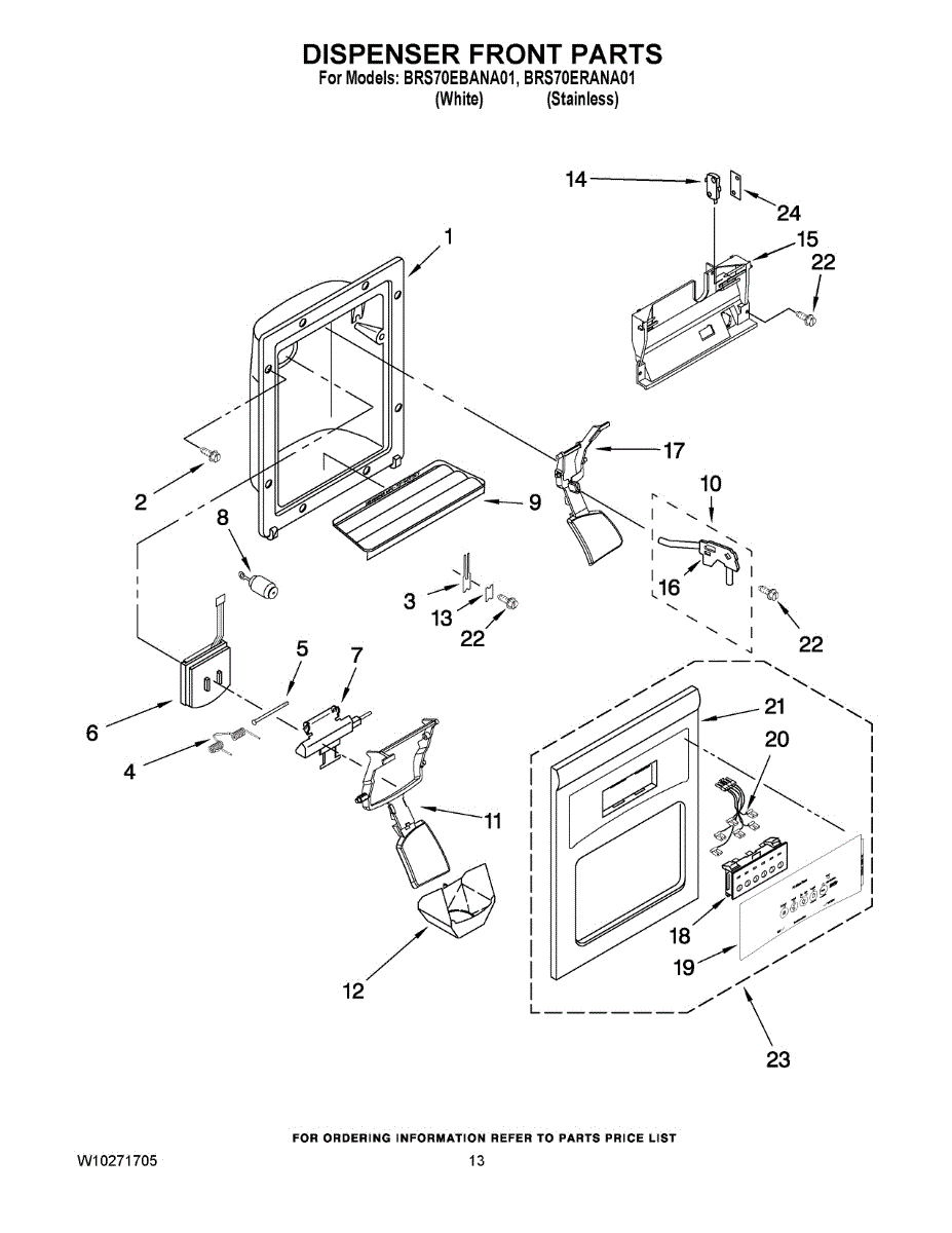 Grille sits below the water and ice dispenser on your refrigerator door to catch spills. Replace if cracked, stained, or damaged. Snaps into place.