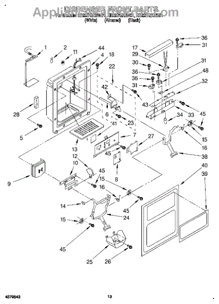 Parts for Whirlpool ED22DQXBW01: 09 - Dispenser Front Parts