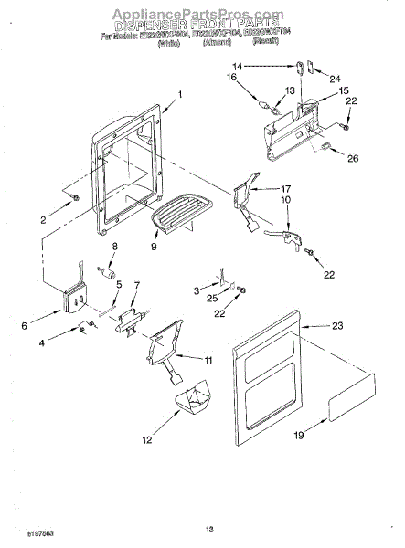 The Ice Dispenser Lever is an OEM component specifically designed for Whirlpool side-by-side refrigerators with built-in ice dispensers. Located inside the ice and water compartment, the lever is responsible for releasing cubed or crushed ice when engaged. Symptoms of a bad ice dispenser lever include: