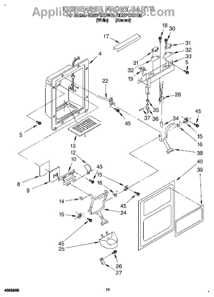 Parts for Whirlpool ED22PSXDW02: 08 - Dispenser Front Parts