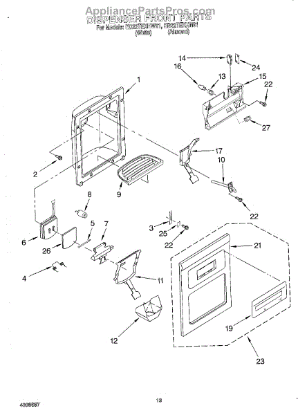 Replaces cracked, broken, or discolored water dispenser lever on side-by-side refrigerators. Installs behind dispenser faceplate. White finish.