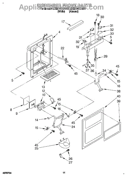 Parts for Whirlpool ED22TWXDW00: 08 - Dispenser Front Parts