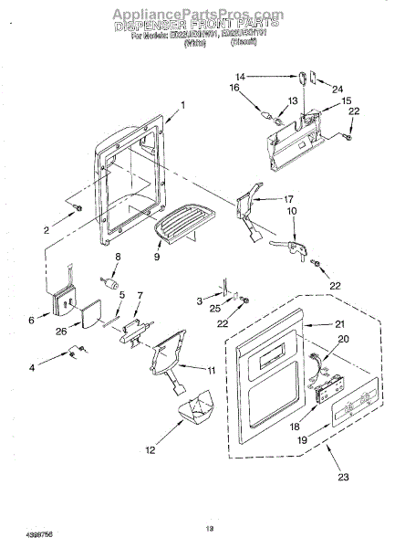 Parts for Whirlpool ED22UEXHW01: 08 - Dispenser Front Parts