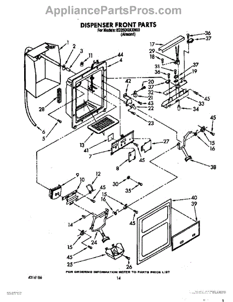 Parts for Whirlpool ED25DQXXN00: 09 - Dispenser Front Parts