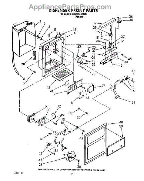 Parts for Whirlpool ED25DQXYN00: 09 - Dispenser Front Parts