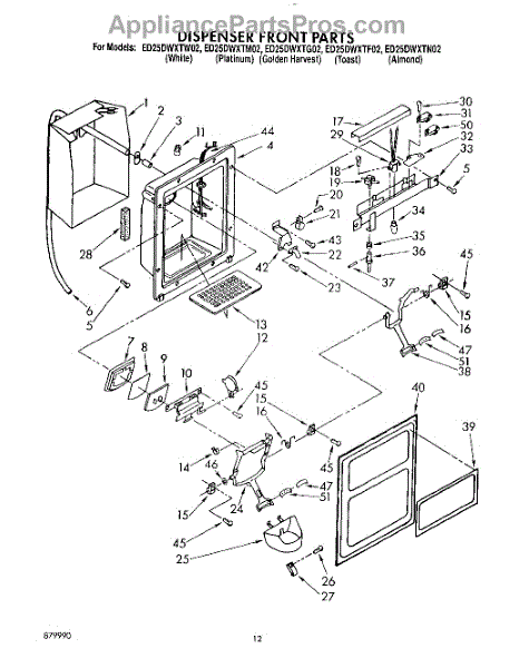 Parts for Whirlpool ED25DWXTM02: 09 - Dispenser Front Parts