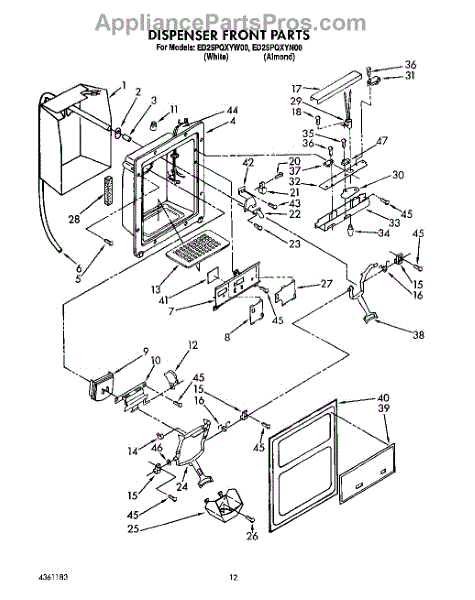 Parts for Whirlpool ED25PQXYW00: 09 - Dispenser Front Parts