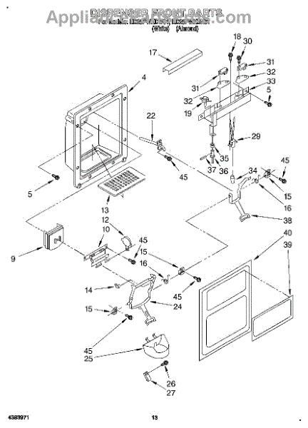 Parts for Whirlpool ED25PWXDN01: 08 - Dispenser Front Parts