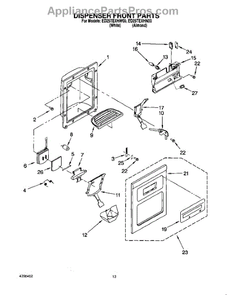 Causes of a bad lever can be worn gears or connector linkages inside the ice dispensing mechanism from repeated use over time. This OEM Whirlpool part is also compatible with Maytag, Jenn-Air, Amana, Magic Chef, Admiral, Norge, and select Kenmore fridge models.