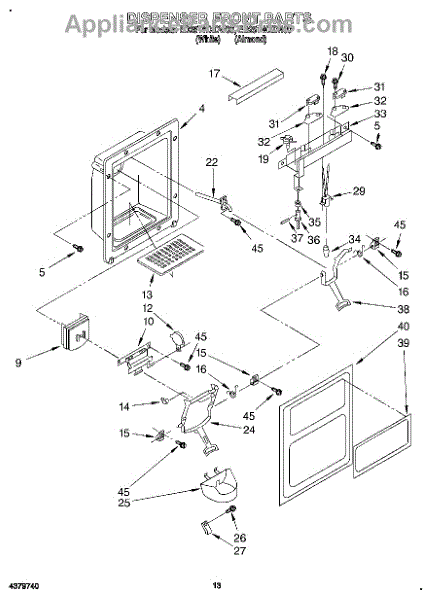 Parts for Whirlpool ED25TWXDN00: 08 - Dispenser Front Parts