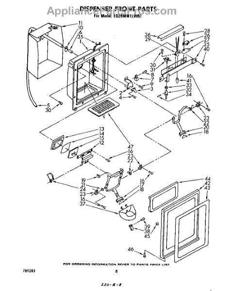 Parts for Whirlpool ED26MM1LWR1: 05 - Dispenser Front Parts