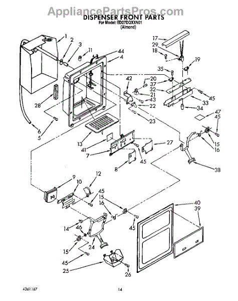 Parts for Whirlpool ED27DQXXN01: 09 - Dispenser Front Parts