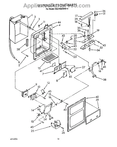 Parts for Whirlpool ED27RQXWW10: 09 - Dispenser Front Parts