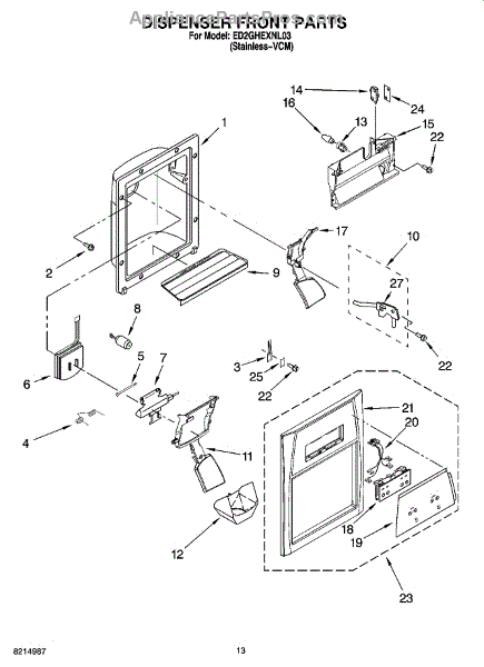 Guides ice from the bucket through the dispenser chute. Replace if cracked, broken, or missing to prevent ice jams and ensure smooth dispensing.