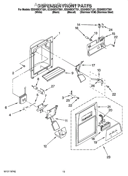Fix a broken or stained water dispenser paddle on your refrigerator. This biscuit-colored lever restores smooth water dispensing in minutes.