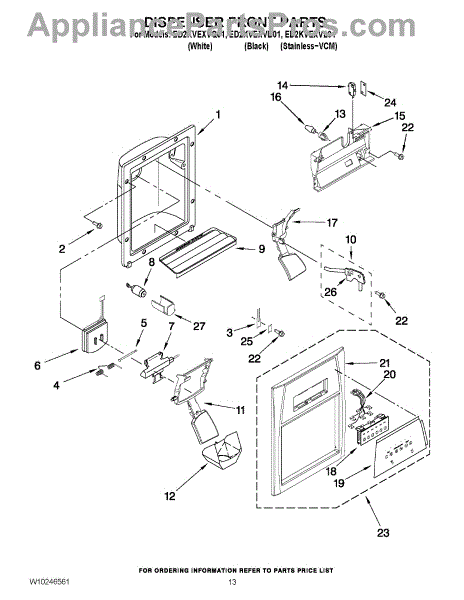 This OEM Whirlpool part is also compatible with Maytag, KitchenAid, Jenn-Air, Amana, Magic Chef, Admiral, Norge, Roper, and Kenmore side-by-side refrigerator models.
