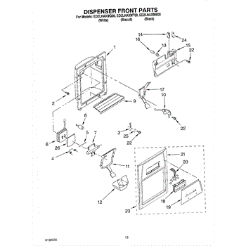 The Ice Dispenser Guide is an OEM replacement part for Whirlpool brand refrigerators. These brands also include Maytag, KitchenAid, Norge, Roper, Estate, and Kenmore models. It directs ice from the ice bucket to the dispenser chute. It helps to prevent jams by guiding the ice through the dispenser system smoothly and evenly.
