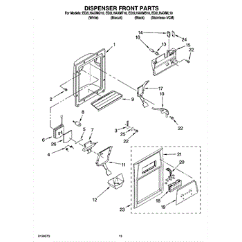 Parts for Whirlpool ED2LHAXMQ10: 08 - Dispenser Front Parts