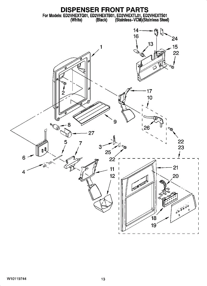 Parts for Whirlpool ED2VHEXTB01: 08 - Dispenser Front Parts