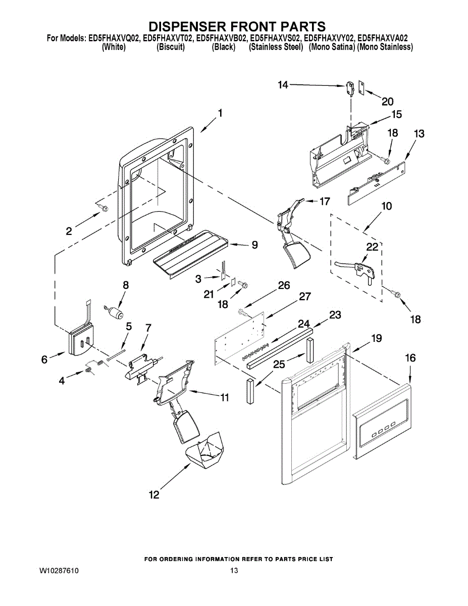 Fix a cracked or damaged dispenser front panel. This cover restores your refrigerator's clean appearance and protects internal components. 145 chars.