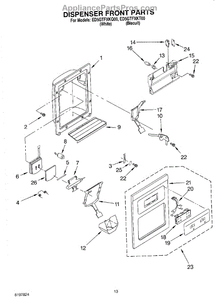 Parts for Whirlpool ED5GTFXKT00: 08 - Dispenser Front Parts