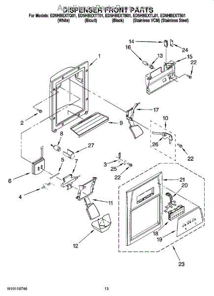 Parts for Whirlpool ED5HBEXTT01: 08 - Dispenser Front Parts