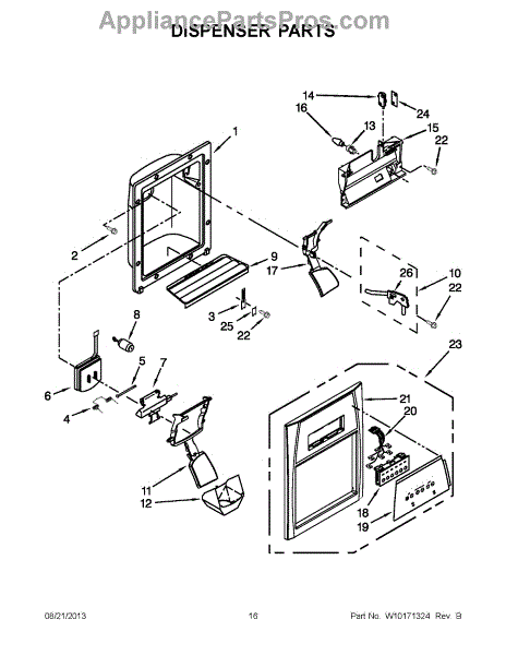 This ice dispenser lever is the white paddle your glass presses to activate the refrigerator's ice dispenser. Replace a cracked or worn lever to restore smooth dispensing and keep the dispenser area looking clean and finished.