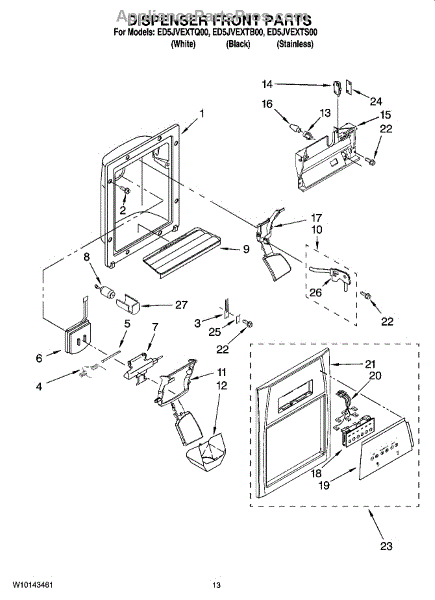 Parts for Whirlpool ED5JVEXTS00: 08 - Dispenser Front Parts