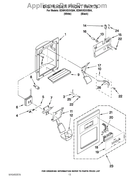 Parts for Whirlpool ED5KVEXVB04: 08 - Dispenser Front Parts