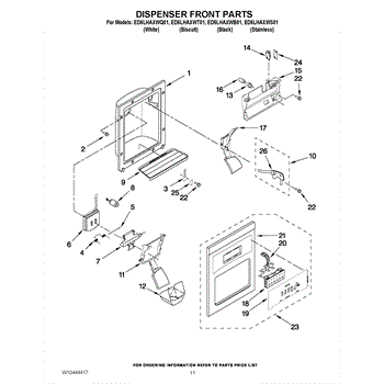 The Dispenser Overflow Grille is an OEM part for Whirlpool refrigerators. This grille sits below the water and ice dispenser on the refrigerator door, catching any spills or overflow to keep the area clean and prevent water from dripping down the refrigerator. For Black order 2206670B, for Bisque order 2206670T