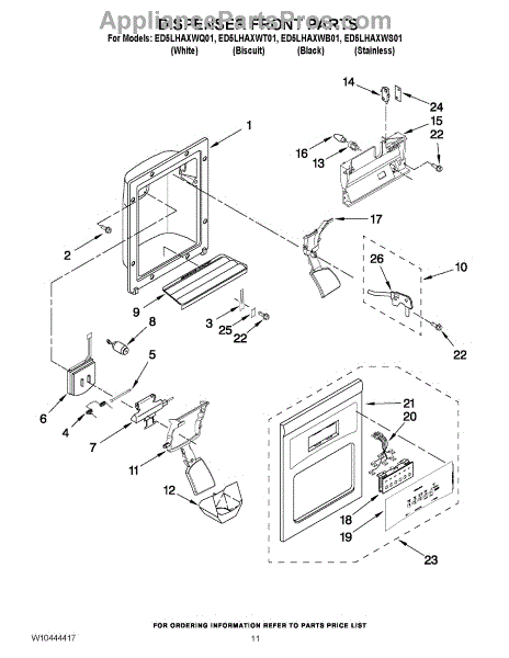 Used to prevent water from overflowing from the dispenser on the freezer door. Color: Biscuit. It measures about 10 inches wide by 3 inches deep. For black order WP2206670B. For white order WP2206670W.