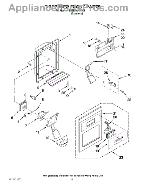 Parts for Whirlpool ED5LHAXWS06: 08 - Dispenser Front Parts